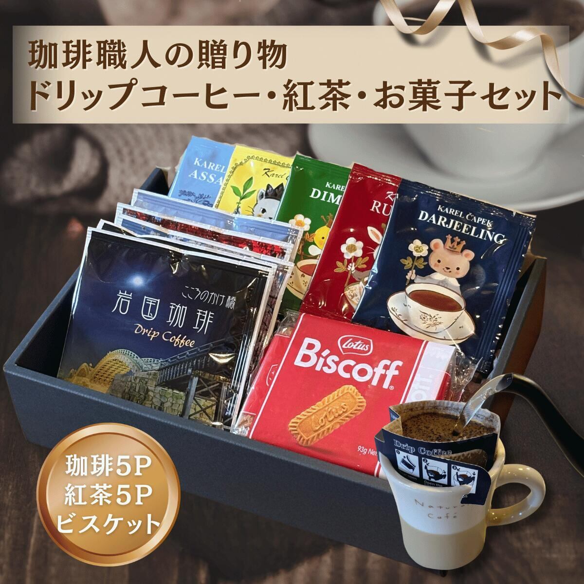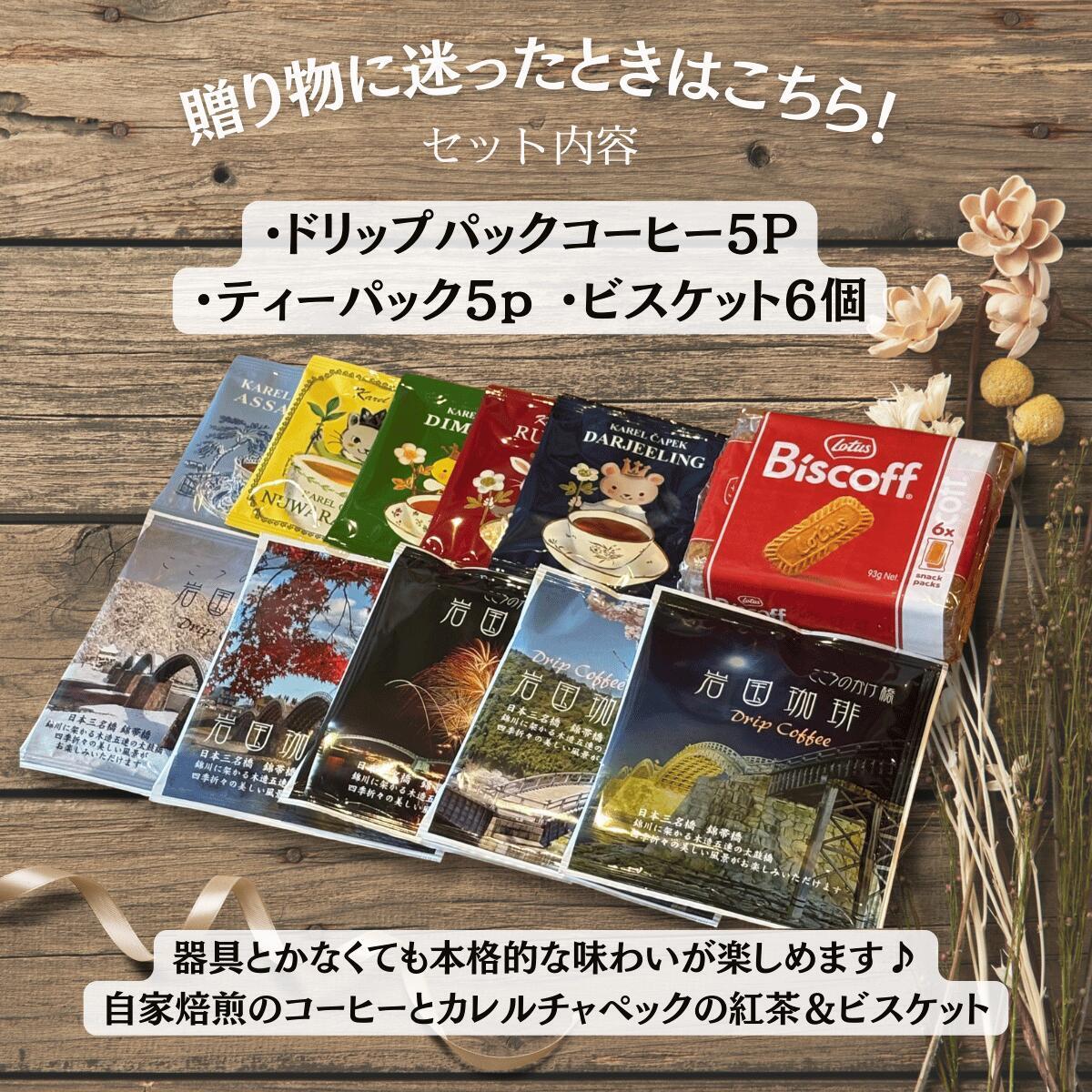 母の日 コーヒー 紅茶 お菓子 ギフト 詰合せ 【 岩国珈琲 ドリップバッグ 5P カレルチャペック 紅茶 5P ビスケット 】 自家焙煎 珈琲 内祝 御祝 御礼 誕生日プレゼント 贈り物 カフェカンパニー