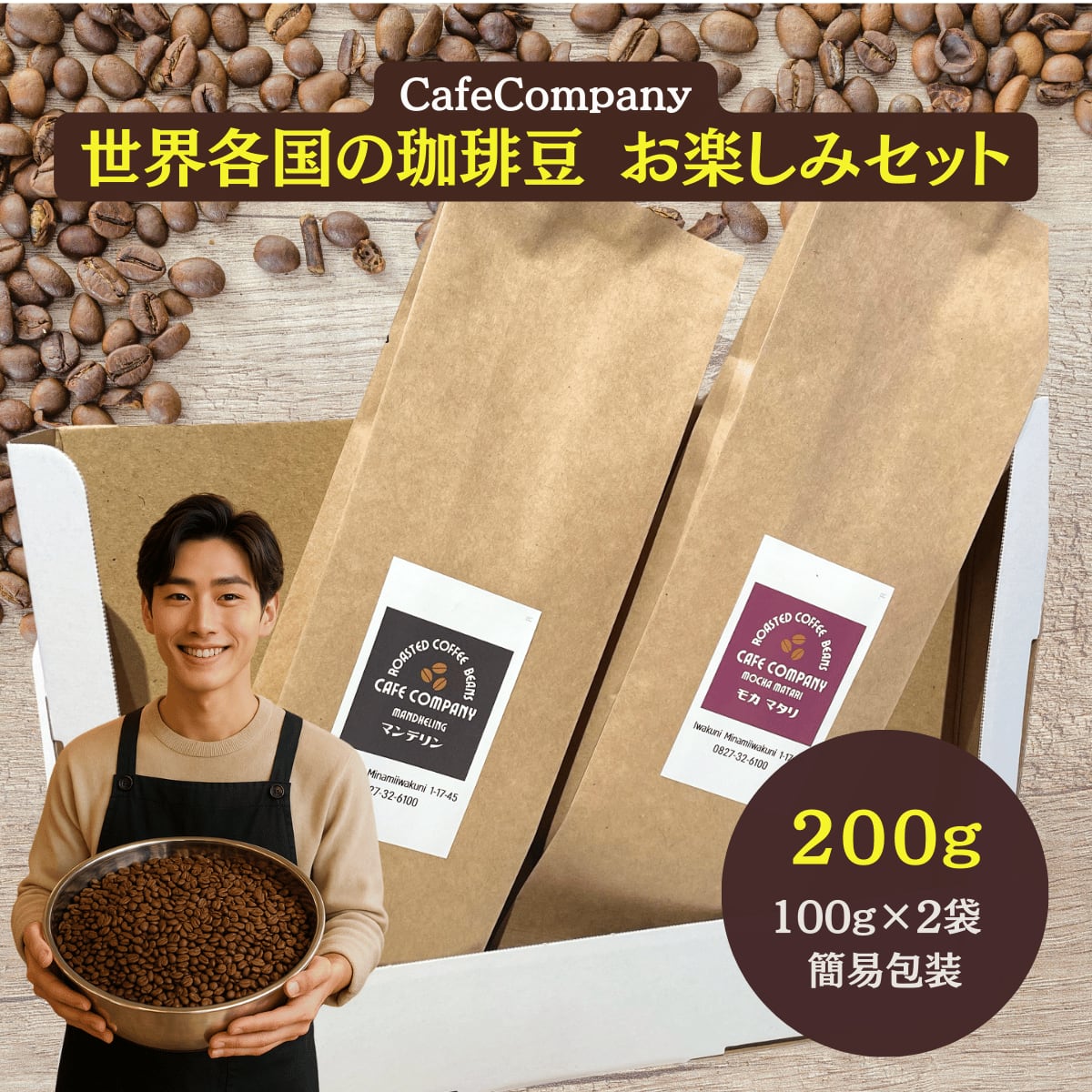 送料無料 コーヒー豆 世界の珈琲 2種類 お楽しみセット 200g(100g×2袋)自家焙煎 コロンビア ブラジル グァテマラ キリマン マンデリン トラジャ モカマタリ お試し カフェカンパニー 山口